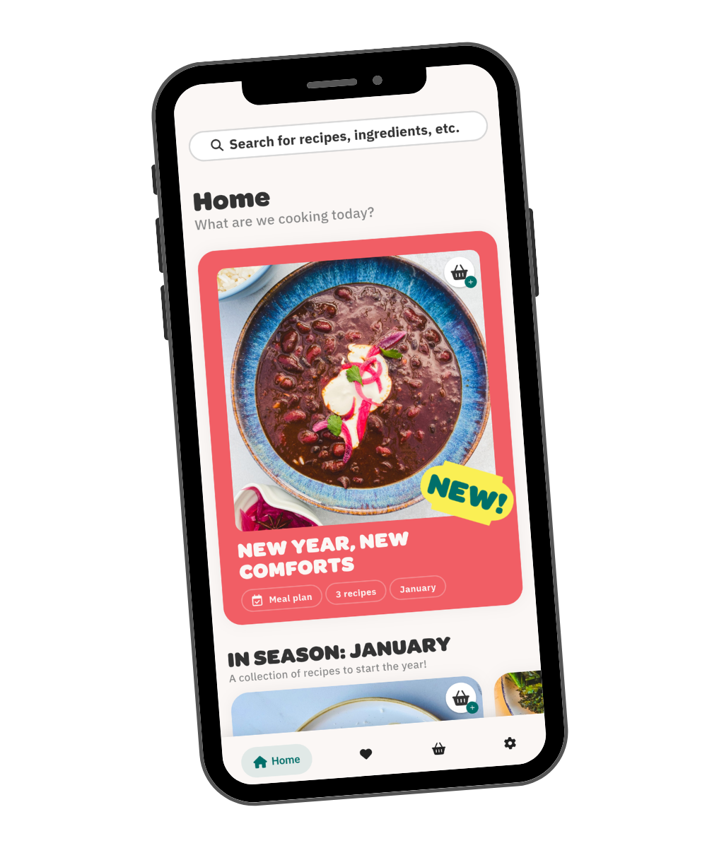 Browse handcrafted, sustainable meal plans with delicious veggie-rich recipes in the app. Choose the latest plan or your favourite from the archives.